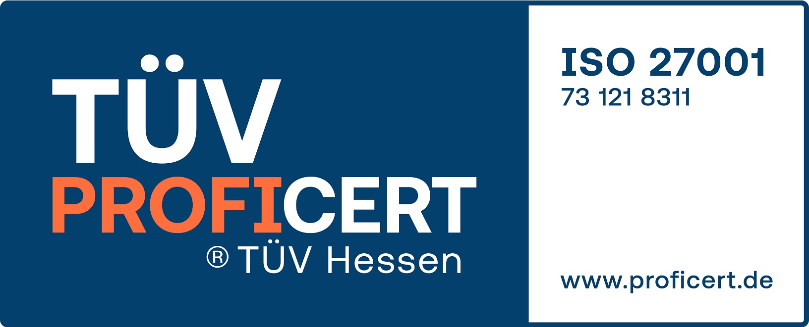 Wir sind uns der Sensibilität der Daten und Informationen die wir täglich verarbeiten bewusst. Aus diesem Grund haben wir alle Prozesse im Unternehmen zur Informationsverarbeitung überprüfen und nach DIN ISO 27001 zertifizieren lassen.